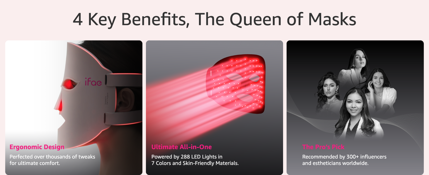 I’ve bee.n using the iFae LED mask for about three weeks, 10 minutes each evening, and I can see real changes. My fine lines look softer, and the redness on my cheeks has noticeably calmed down. It’s lightweight and fits comfortably — no slipping or awkward pressure points. Highly recommend for anyone serious about their skincare routine.