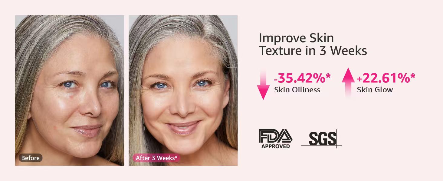 What I love most is that the light doesn’t leak into my eyes. The mask feels soft on the skin and the adjustable strap holds it in place while I read or watch TV. After two weeks, my skin texture looks more. refined, and my forehead lines are less obvious.